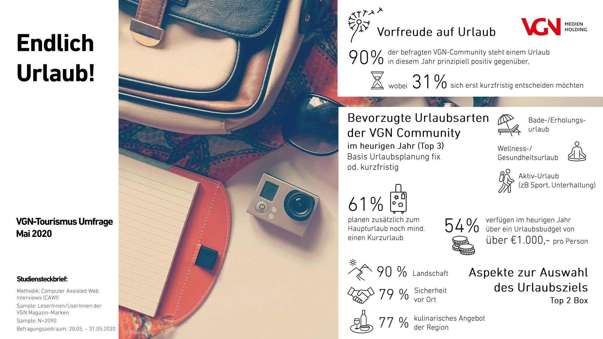Die Vorfreude auf den lang ersehnten Urlaub ist groß bei den ÖsterreicherInnen. Die VGN-Tourismusumfrage im Mai 2020 zeigt deutliche Ergebnisse. Österreich ist als Urlaubsland ein großes Thema, aber auch die Sicherheit vor Ort. Jetzt gilt es, die richtigen Wegweiser zu setzen!