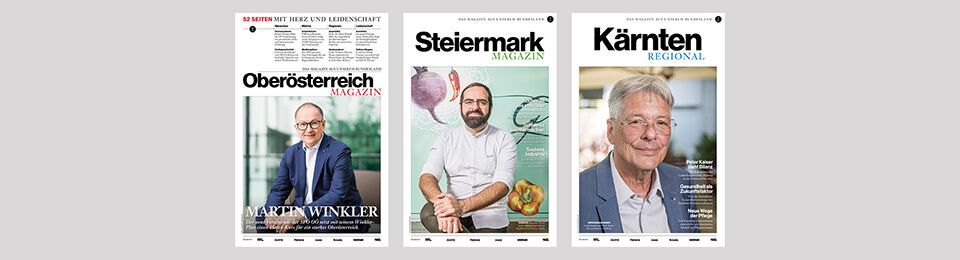 Die Regionalmagazine berichten mit viel Herz und Leidenschaft über Menschen, Märkte und Regionen. Sie werden allen Titeln der VGN (NEWS, trend., TV-MEDIA, WOMAN, GUSTO, autorevue, yachtrevue) im jeweiligen Bundesland mehrmals jährlich beigelegt – sowohl in der Abo-Auflage als auch im Einzelhandel. Zusätzlich gibt es Sonderverteilungen.